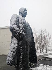 Útfrægt, Gísli var borgarfulltrúi og beitti sér mikið fyrir bættri aðstöðu til íþróttaiðkunnar og fyrir íþróttamannvirkjum. Hér er stytta fyrir utan Ísland og í næsta nágrenni við mest áberandi listaverk hans, Laugardalshöllinn, sem er sú sannarlega.