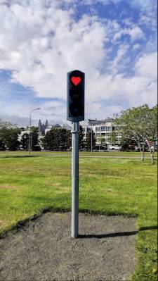 The hearts of Akureyri's traffic lights are a charming and unique feature that spread warmth and positivity throughout the city. Replacing the standard red light with a heart symbol, they reflect the welcoming and friendly spirit of Akureyri, adding a touch of joy to everyday life.
