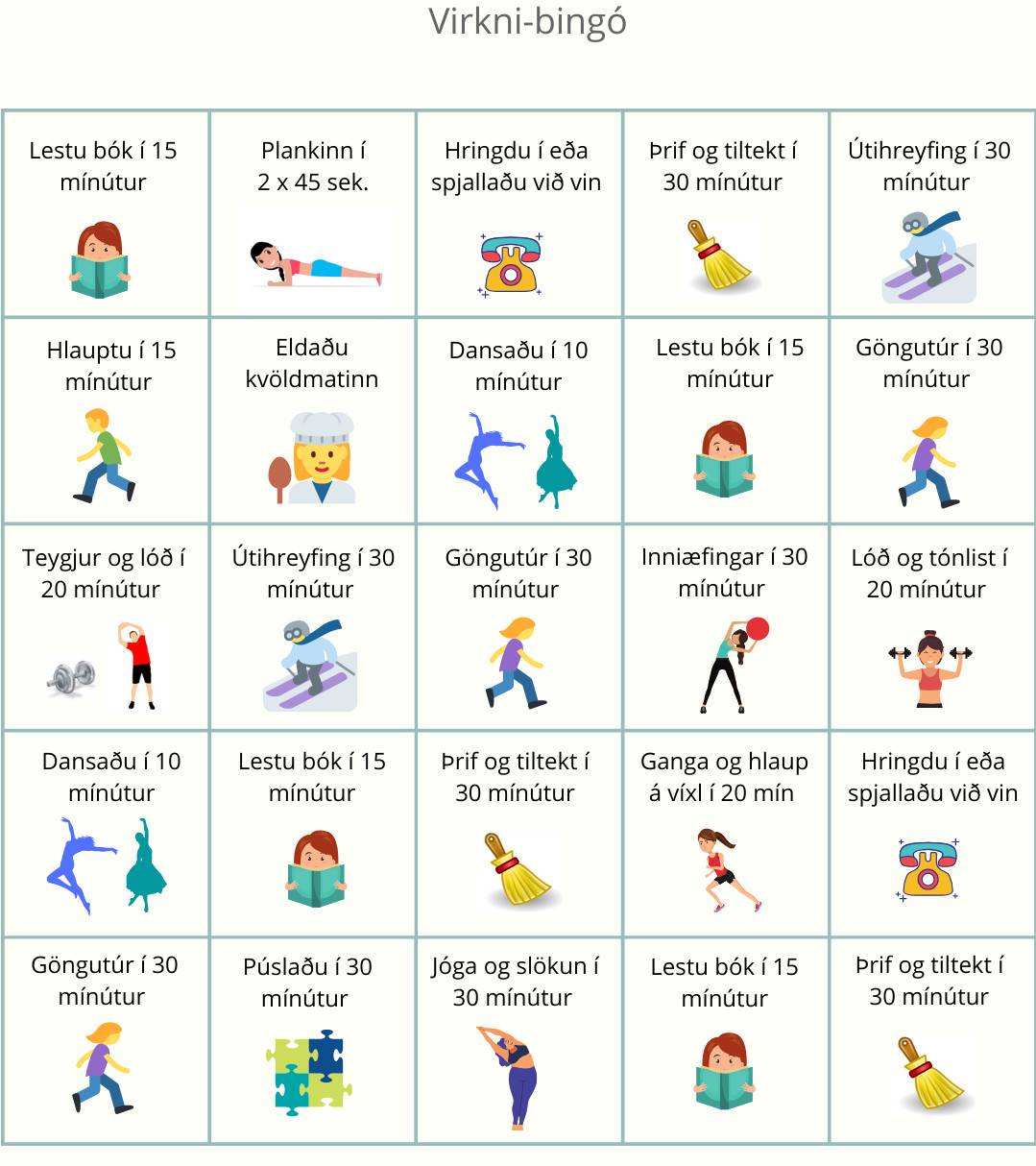 Það eru margar tegundir af líkamsrækt sem við getum stundað, svo sem gang, hlaup, svimningur og þyngdar. Það er mikilvægt að finna líkamsrækt sem við njótum og getum stundað reglulega. Þannig getum við bæta heilsuna okkar og vellíðan okkar.