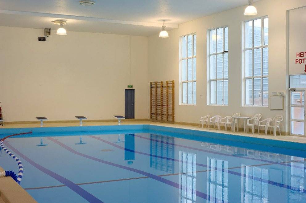 Sundlaugin býður einnig upp á ferskt vatn úr heitu vatni sem er dregið upp úr jarðvegið, og það gefur gestunum möguleika á að slaka á í heilnæmu vatni sem er frá náttúrunnar hendi. àetta er einstakt og sjaldgæft á àslandi, og margir gestir njóta þess að slaka á í heilsteyptu vatni meðan þeir njóta bókasafnaheimsins.