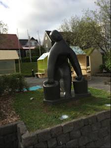 Eitt af mínum uppáhalds listaverkum eftir Ásmund. Mér finnst magnað hvað hann nær að túlka þreytuna og bugunina í styttunni án þess að móta smáatriði í andlitið. Táknræn og dulmögnuð. Ég sveiflast reglulega á milli þess að finnast þessi stytta hér flottari eða sú hvítmálaða sem er í Höggmyndagarði Ásmundar við Sigtún. Dökka styttan í miðbænum er úr málm en sú ljósa er úr steypu. Báðar mjög flottar.